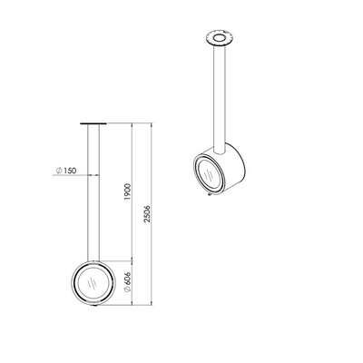 Hanging from the ceiling: Requires a fair amount of prep. If the ceiling you are attaching to has "joists" then you will need to incorporate a metal framework of your own design (metal noggins). Twin wall chimney parts are then used to proceed upwards from the top of this part the same as if the twin wall were connected to a stove (so first part would be a twin wall to vitreous adaptor). Need help with this? Call and ask for Julian.