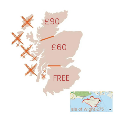 SCOTLAND ABOVE EDINBURGH Additional (subsidised) delivery charge for pallets: Upper Scotland, Isle of Wight, Isle of Man