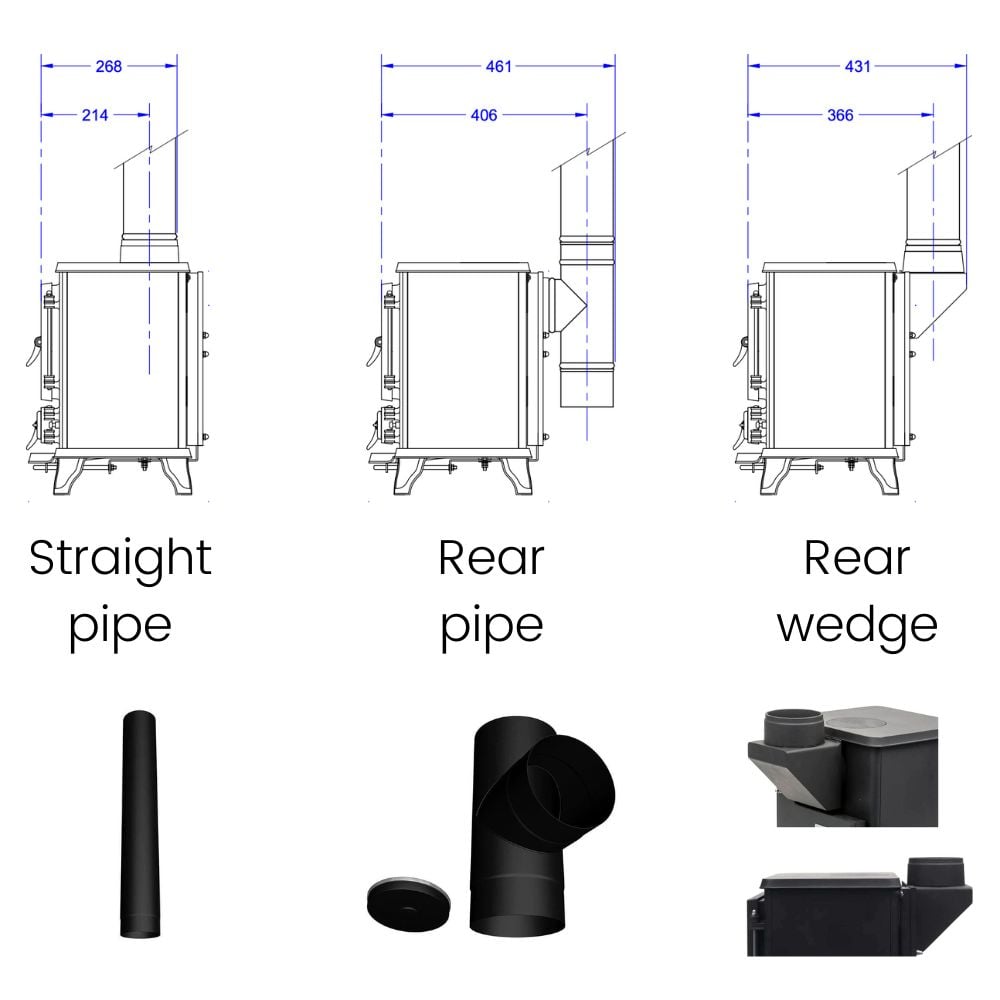 Enables rear exit to be used and stove can be swept from inside. Perfect for inserting stove into a tight recess as one never needs access to the rear of the stove. ONLY for the Hobbit stove.